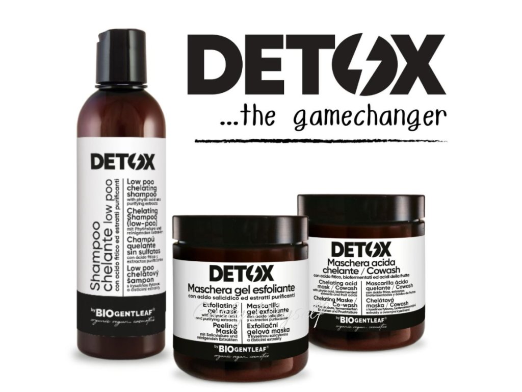 Bio Gentleaf balíček Detox pro dokonalé vyčištění vlasů je unikátní přírodní procedurou, která je srovnatelná s chemickým salonním čištěním vlasů. Maska před mytím, šampon a maska po mytí zbaví vaše vlasy nánosů prachu, stylingových produktů a jiných nečistot a dodá jim na lehkosti, objemu a lesku. Řada je vhodná pro všechny typy vlasů. Je ideální i pro jakékoliv barvené vlasy (můžete taky použít před barvením vlasů).