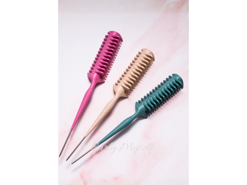 Lehký a štíhlý tvar hřebenu umožňuje kontrolované a efektivní styling. Při protahování vlasy vytváří jednotné prameny, které dodávají přirozenému vzoru kudrlin hladký a uhlazený vzhled.
